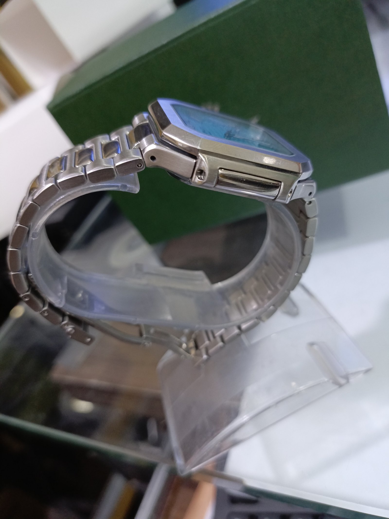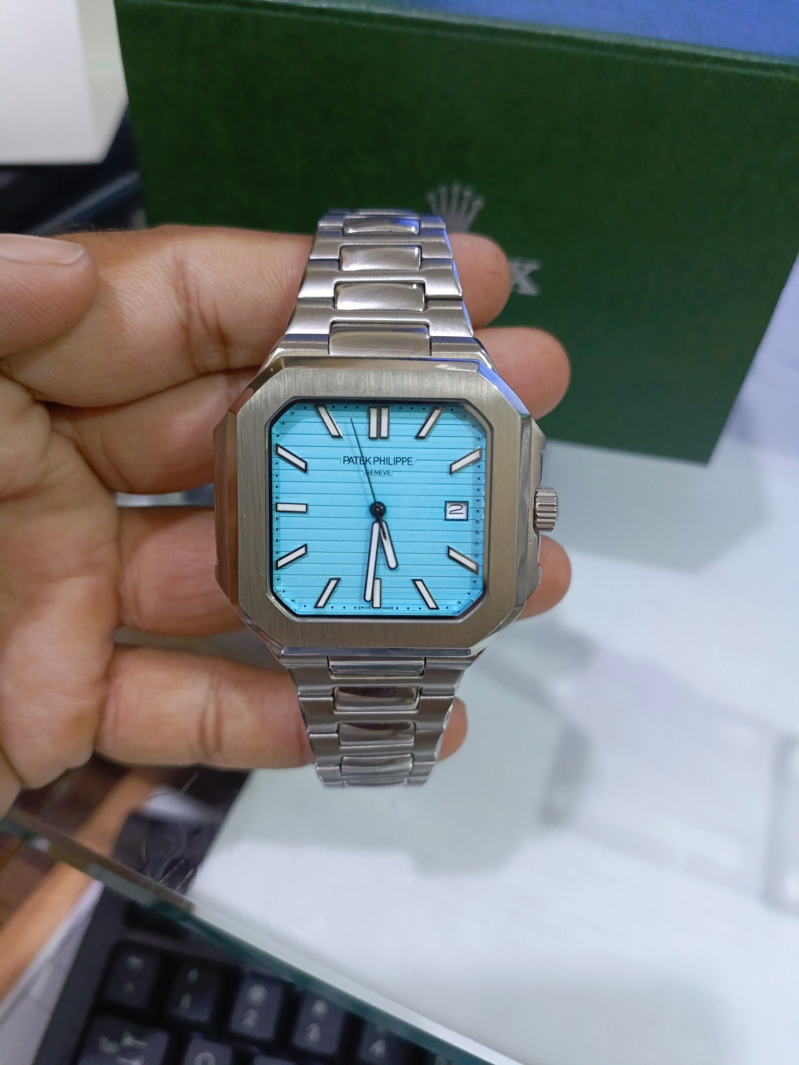 The Patek Philippe Steel Elegance with its stunning turquoise dial is a true standout. It combines bold design with classic Swiss craftsmanship, offering a perfect balance of luxury and everyday wearability. The build quality feels premium, the finish is flawless, and the dial color is refreshingly unique — an eye-catcher in any setting. A must-have for those who appreciate refined style and reliable performance.